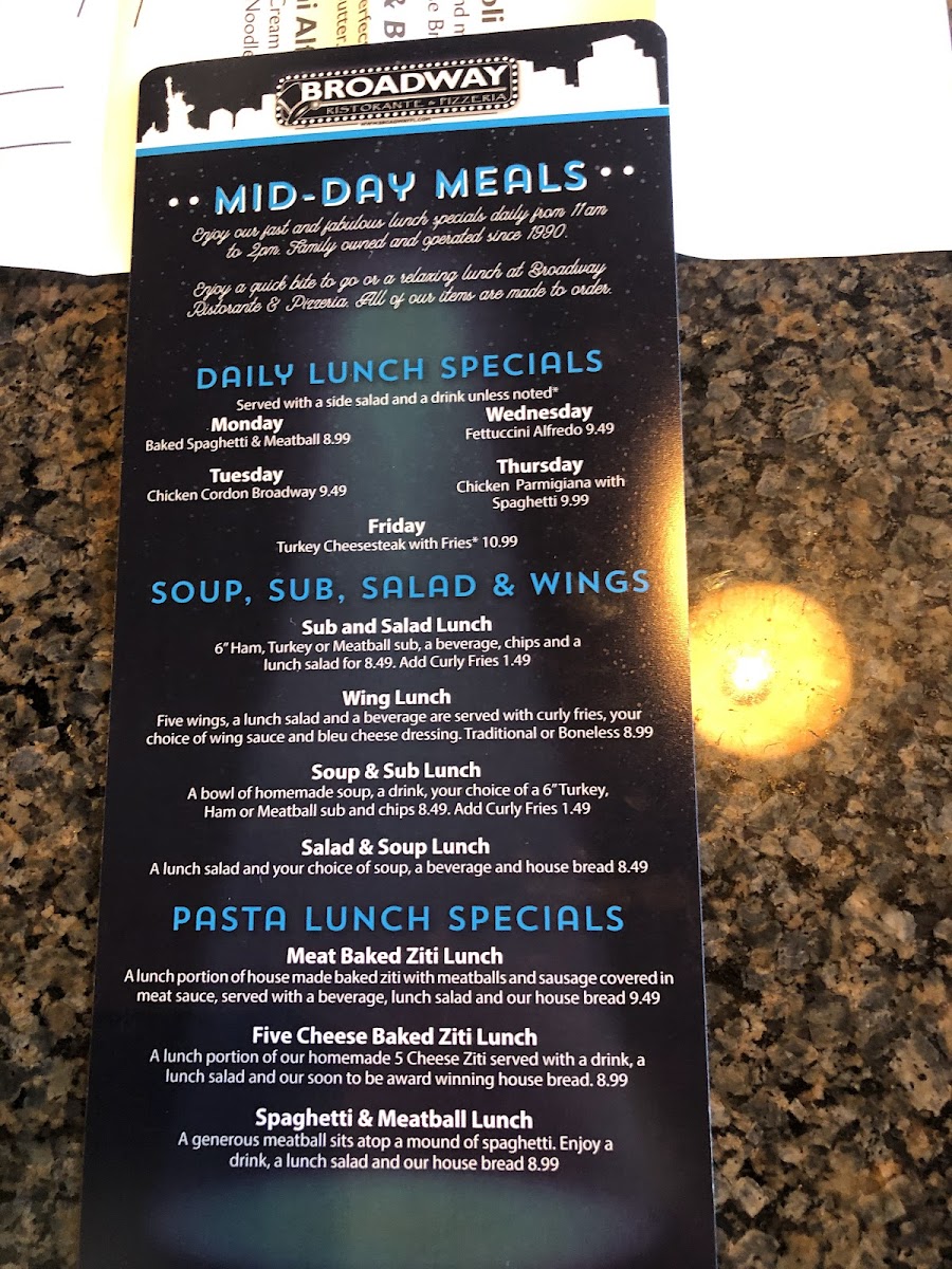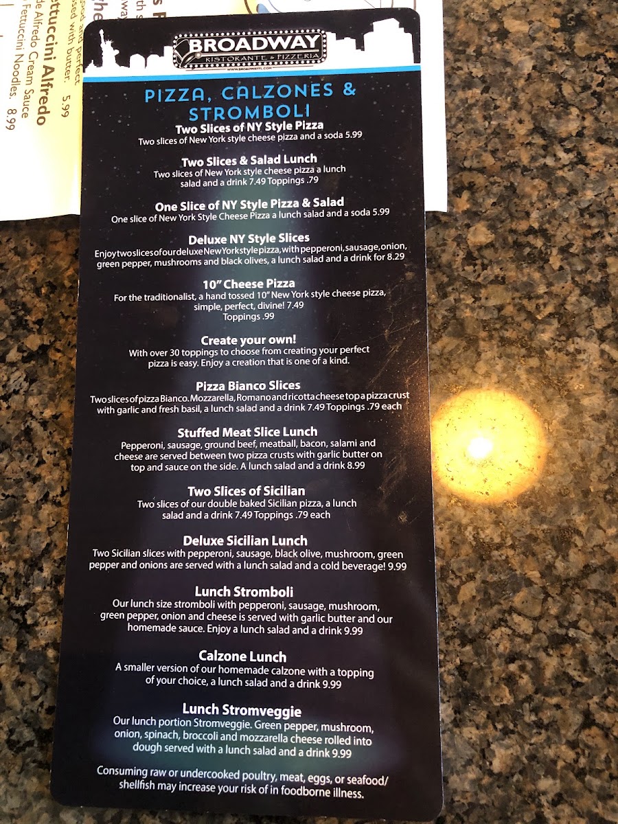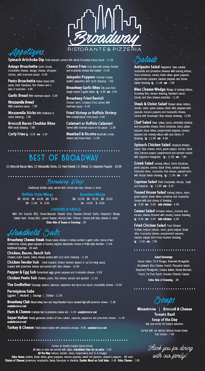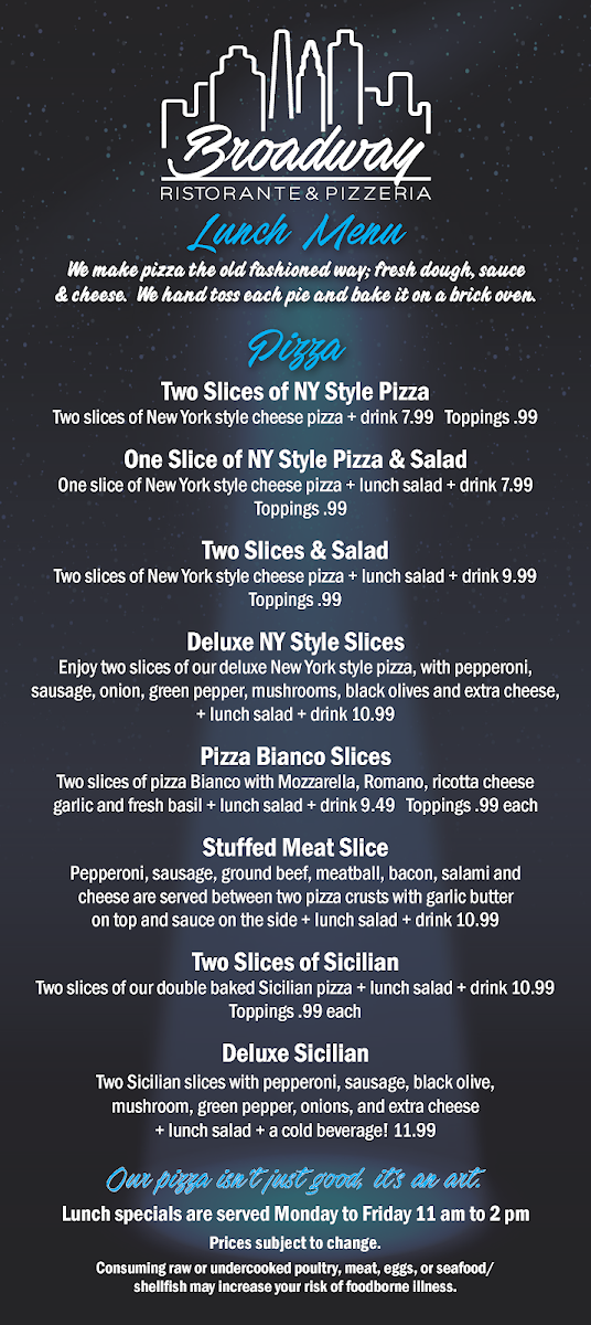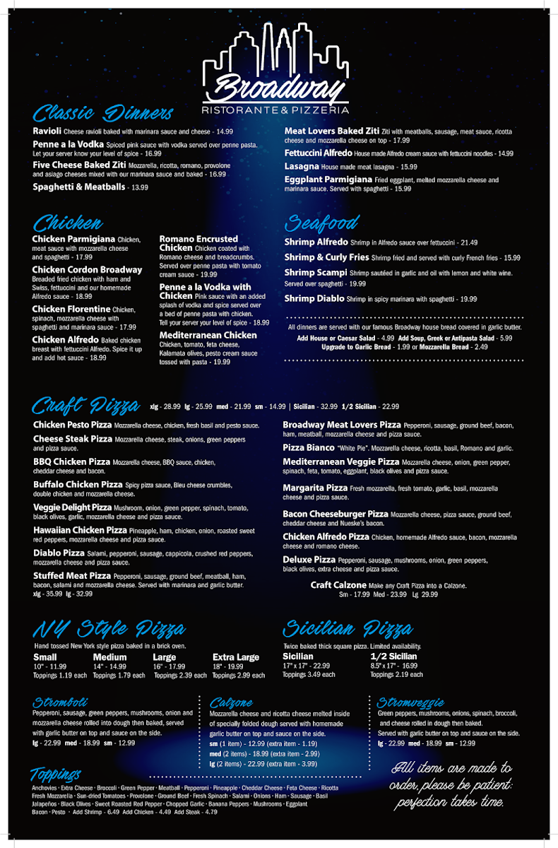 Broadway Ristorante & Pizzeria Menu (Update 2025)